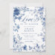Incorpore a su fiesta de compromiso una elegancia atemporal y un toque de encanto clásico con esta Invitación de Fiesta de Compromiso Elegante Toile Chinoiserie Azul. Con intrincados patrones de toile azul y delicadas flores, este diseño combina la belleza de la chinoisería tradicional con un giro romántico y contemporáneo. El tema "El amor está en flor", elegantemente escrito en tipografía sofisticada, captura perfectamente la esencia del amor y la belleza floreciente de la naturaleza.