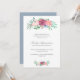 Elegante invitación para el día de los profesores con un huerto de flores compuesto por rosas rosa pastel y malva en la parte superior e inferior. Los detalles del evento están en un gris medio con el título del evento en una fuente de script. La parte posterior es azul polvoriento y puede cambiarse a cualquier color que desee. Este diseño floral es ideal para una celebración en primavera.