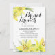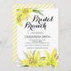 Invitación moderna y mínima a la ducha de novia con flores de lirio amarillo acuático y vibrante caligrafía de texto.