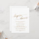 Esta elegante tarjeta de invitación a la ducha con caligrafía dorada es perfecta para una ducha de novia en otoño. El diseño neutro cuenta con una tarjeta minimalista decorada con una romántica tipografía de Relieve metalizado de imitación de oro. Nota: Este diseño no tiene Relieve metalizado oro real. Es un gráfico de alta calidad hecho para parecer un Relieve metalizado dorado.