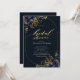 Elegantes flores azul marino con hojas de oro sobre fondo azul marino. Hermosa invitación que se puede personalizar con su nombre.Seleccione el botón "personalizar" para cambiar el estilo de letra, color y tamaño.
