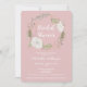 Celebra que la novia esté con esta elegante y moderna Invitación a bañarse en una ducha de agua blanca y floral de invierno. El diseño muestra una corona floral de rosas, pino y eucalipto en purpurina blanco, verde y dorado. Se muestra la escritura de guiones y bloques. La parte posterior muestra un fondo en blanco en el mismo color que la parte frontal. Todo el texto se puede modificar y hay disponibles diferentes opciones de color.