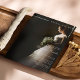 Celebre con estilo con esta elegante invitación a la ducha de novias en blanco y negro que incluye una foto intemporal de una hermosa novia sosteniendo un ramo. El dramático fondo oscuro y la tipografía moderna crean un estilo sofisticado y de moda, perfecto para honrar a la futura novia. Personaliza con tus propios detalles para un conservador único que marca el tono para una celebración de novias con clase. Ideal para novias que aman la elegancia moderna, el diseño mínimo y la papelería inspirada en la fotografía.