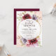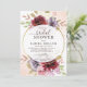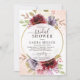 Invitación a la ducha con novia floral con delicados rosas burdeos, rosas, lilac y vegetación alrededor de un marco circular dorado y los detalles de su fiesta con un tipo de letra moderno.La invitación se puede personalizar fácilmente para cualquier evento añadiendo los detalles del evento, el estilo de letra, el tamaño y el color del tipo de letra y la redacción de su elección pulsando en el botón "Personalizar".
