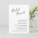 Simple invitación de brunch de novias en blanco y negro con el título del evento en un elegante guión manuscrito en la parte superior izquierda y los detalles del evento en la alineación derecha en la parte inferior derecha. La letra a mano de moda añade un toque romántico a este diseño minimalista.