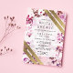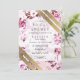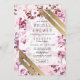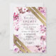Invitación Elegante ducha de novia rayada dorada rosada flora