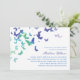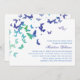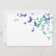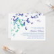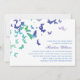 La luminosa y caprichosa ducha de matrimonio ofrece un diseño de mariposa con colores vivos y un moderno formato de paisaje. Perfecto para una reunión de primavera o verano. Colores verdes, azules y violetas en un fondo blanco.