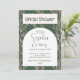 Esta impresionante invitación a la ducha de novias presenta un hermoso tema botánico, con un fondo verde adornado con delicadas vinas rosas de hojas. Las palabras "Bridal Shower", el nombre de la futura novia, y la información del registro se presentan elegantemente en un color verde bonito para coincidir con el fondo, mientras que el resto del texto está en un gris oscuro y elegante para ofrecer un contraste elegante. La invitación está diseñada con una variedad de tipos de letra y estilos para crear una pieza única y atractiva de papel boda. Es perfecto para una elegante y sofisticada ducha nupcial, o para alguien que busca una invitación única con un tema botánico. Los delicados detalles y el diseño atemporal hacen de esta invitación una hermosa manera de celebrar los futuros nupciales de la futura novia. Ya sea que esté planeando una reunión íntima o una celebración más grande, esta elegante y elegante invitación seguramente impresionará. El tema botánico añade un toque de naturaleza y belleza a cualquier ducha de novia, lo que lo convierte en la elección perfecta para los amantes de la naturaleza o de la belleza de la naturaleza. Con su diseño de alta calidad y su atención a los detalles, esta invitación será apreciada por la futura novia y por todos sus invitados durante años.