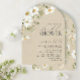 Esta elegante invitación exhala el encanto de un jardín iluminado por el sol, donde el suave y rústico encanto de las daisies acuarelas combina con la elegancia intemporal de la caligrafía delicada. El suave fondo beige aporta un toque cálido y vintage, mientras que el blanco puro de las mareas crea un contraste que respira vida en el diseño. Esta combinación de tonos tierra y belleza botánica crea el tono perfecto para una ducha nupcial que combina elegancia clásica con simplicidad natural. El estilo caprichoso y refinado hace de esta invitación una elección ideal para una novia que acepta la belleza de la naturaleza y desea organizar una celebración llena de amor y luz. Ya sea que esté planeando una reunión íntima en un encantador viñedo, un rústico refugio rural o un evento inspirado en el jardín, este diseño reflejará su celebración única de la manera más elegante. Además de esta invitación a la ducha de novias, el diseño puede extenderse a una suite que coincida con todas tus necesidades de papelería de eventos (gracias a tarjetas, menús y más), creando un aspecto cohesivo que impresionará a tus invitados. Si busca variaciones de color personalizado, productos a juego o ajustes para adaptarse a su estilo personal, no dude en ponerse en contacto con nosotros. Estaría encantado de ayudarte a crear el look perfecto para tu celebración de novias. Copyright Anastasia Surridge, todos los derechos reservados.