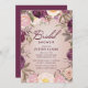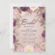 Clásico, elegante, de color rosa claro y púrpura, vintage floral y follaje invitación a la ducha de novia.