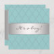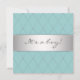 Elegante plantilla de invitación a la ducha de niños de color azul y plata verde azulado y azul verde azulado de diamantes. Esta hermosa invitación a la ducha de bebé azul verde azulado se personaliza fácilmente para tu evento simplemente eligiendo el botón "Personalizar it!" para empezar a añadir los detalles del evento, estilo de fuente, tamaño de fuente y color, y redacción. Atención: todos los diseños de cartas e invitaciones que encontrarás en Zazzle son gráficos impresos sin joyas, arcos, arcos, grabados en relieve o piezas añadidas.