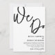 Esta es una moderna y elegante invitación a la boda "We Do'calligraphy" en negro sobre un fondo blanco. Fácil de personalizar del texto para crear algo realmente único.