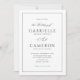 Moderna invitación de boda con elegante escritura caligráfica en blanco y negro que presenta una escritura elegante, combinada con un tipo hermoso y un delicado marco.