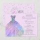 Invitaciones de Quinceañera Mis Quince Anos modernas y elegantes. Purpurina diamante tiara / corona y vestido / vestido. Lavanda de color claro y violeta con colores azules. Tarjetas de plantilla fáciles de editar. Perfecto para la fiesta de cumpleaños 15 chicas.