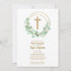 Las elegantes primeras invitaciones a la comunión incluyen una cruz purpurina de imitación dorada, una corona de hojas de eucalipto y sus detalles con letras de moda en la parte delantera y puntos dorados en rosa en la parte posterior. Perfecto para la primera comunión, bautismo o bautismo de su hijo. ARTÍCULOS DE COINCIDENCIA disponibles en nuestra tienda.
