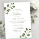 Minimalista moderno niño o chica Bautismo / Invitación a la cristiandad con la acuarela eucalipto verde hojas de follaje ramas y cruz de oro.