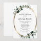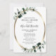 Elegante Relieve metalizado dorado Eucalyptus Invitación a la ducha de novias con esquinas redondeadas... Nuestra lujosa invitación a la ducha de puentes botánicas tiene un falso marco dorado metálico oval adornado con hojas de eucalipto de salvia y de color esmeralda que crean un borde natural para el texto de invitación dentro. Todo el texto de ejemplo se puede revisar fácilmente con sus propios detalles en la plantilla de personalización.