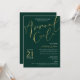 Crea invitaciones elegantes para tu cena de gala benéfica, ceremonia de premiación o función de recaudación de fondos con esta invitación de Evento Anual de Gala de la compañía de esmeralda verde y falso oro. Esta invitación de negocios de lujo con foil de falso oro y verde presenta un diseño chic con fuentes de caligrafía elegantes y espacio para tu logotipo y detalles del evento.