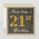 Este sencillo y elegante diseño de invitación para fiestas de cumpleaños incluye un mensaje personalizado como "Cumpleaños 21 de los Primeros" (con el "21º" con un aspecto de color falso/imitación dorado) dentro de un rústico área de apariencia de madera de imitación con un sencillo contorno fronterizo. El nombre se encuentra en un texto elegante de color blanco tipo script, y se puede personalizar. En la parte posterior se incluyen detalles de invitación personalizados. Una invitación para una fiesta de cumpleaños como esta podría ser usada tal vez cuando se invita a la gente a una fiesta de cumpleaños para alguien que está celebrando su 21º cumpleaños. [~Z0000231]