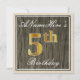 Invitación Elegante, Faux Wood, Faux Gold Quinto Cumpleaños +