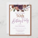 ¡Esta elegante invitación a la fiesta de cumpleaños número 50 es perfecta para su evento especial! Este diseño presenta flores preciosas, ricas, moradas, rosas y doradas. ¡La tipografía personalizado es moderna y elegante!