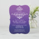 Hermosa invitación de aniversario con un adorno de hojas de damasco blanco vintage sobre un fondo moderno con gradiente de color púrpura. Disponible en nuestra tienda en una amplia selección de colores modernos y de moda. ¡Los pedidos personalizados son siempre bienvenidos! Fácil de personalizar con la información de su fiesta de aniversario y se puede personalizar para un aniversario de bodas de 25 años, 30 años de aniversario de bodas, 35 años de aniversario de bodas, 40 años de aniversario de bodas, 45 años de aniversario de bodas, 50 años de aniversario de bodas, 55 años de aniversario de bodas, 60 años de aniversario de bodas.