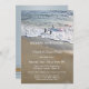 Una elegante invitación de aniversario de boda con olas fluyendo en la arena de la playa.