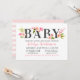 Invitación Elegante Fiesta de Bebé con Flores Rosadas en Acua