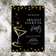 Elegante Fiesta De Cócteles De Vacaciones Invitan A Los Navidades A Invitar. Invitación de fiesta con cócteles de oro, estrellas brillantes con fondo negro. Perfecto para una celebración festiva de Navidades. Esta invitación se puede personalizar fácilmente con los detalles de su evento y personalizar con sus nombres o apellidos.