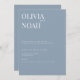 Estas elegantes y minimalistas tarjetas de compromiso incluyen tipografía de escritura moderna y texto limpio para un diseño azul polvoriento simple que le encantará. Añade texto personalizado para proporcionar cualquier información adicional necesaria para tus invitados. Siéntase libre de enviarme cualquier pregunta relacionada con el diseño - ¡estaré encantado de ayudar!