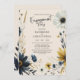 Elegante Wildflowers Beige Engagement Party Invitation incluye hermosas flores acuáticas en tipografía moderna amarilla y azul, y está completamente en personalizable con sus nombres, detalles de bodas y un código QR para su sitio web boda. El diseño formal y la redacción añaden un toque de elegancia a la celebración de su boda. Este artículo se coordina con la Suite Elegante Boda de Flores Silvestres Amarillas Azules. #wildflowarWedding #bluemarri#yellowWedda #goldWeddWedda #formalboda #elegant#floralWedda #beigeboda
