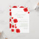 Invitación elegante de fiesta de compromiso de jardín floral de amapola en acuarela roja con tonos de color salvia, tipografía elegante y patrón floral (parte posterior).
