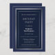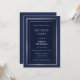 Una elegante invitación a la fiesta de cumpleaños 21 azul marino con un borde doble de plata.