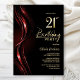 Invitación Elegante Fiesta de cumpleaños 21 negro y rojo