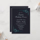 Elegante cena de 40 años de color azul oscuro con adornos de hojas de flores turquesa adornados para enmarcar los detalles de la invitación.