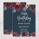 Moderno, elegante, Borgoña Vino Marsala acuarela Floral 70º hito Plantillas de Invitación de Fiesta de Cumpleaños. Chich burgundy, marsala, rosas acuarelas pintadas en la marina, diseño floral de color ruidoso botánico con hojas verdes sobre fondo azul marino. Presenta un elegante diseño de tipografía escrita a mano. Gran elección para la fiesta de cumpleaños de adultos para ella: 13.º 15.º 16.º 20.º 30.º 40.º 50.º 60.º 70.º 80.º 90.º 100, o cualquier edad. #3339 Si necesitas ayuda o elementos coincidentes, por favor contáctame.