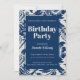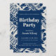 Elegante Invitación a la fiesta de cumpleaños azul de la Marina Elegante plantilla de tarjeta de invitación de cumpleaños azul elegante Plantilla elegante para una invitación de cumpleaños femenina en un tema botánico en azul marino y crema.