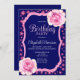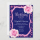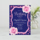 Invitación Elegante fiesta de cumpleaños azul oscuro con flor