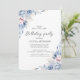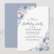 Minimalista Boho Florece arte floral Invitación de cumpleaños en azul y blanco