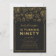 Elegante invitación a la fiesta de cumpleaños número 90 floral con un Relieve metalizado de oro falso floral y bordeado con un fondo gris oscuro en la parte delantera. La invitación tiene un patrón falso de puntos de polka oro contra un fondo gris oscuro en la parte posterior. Personalice esta invitación con sus detalles reemplazando el texto del marcador de posición. Para obtener más opciones, como cambiar el tipo de letra, el tamaño/color del texto, el espaciado entre letras o para contratar o expandir el texto curvo, haga clic en el botón "Personalizar". *Tenga en cuenta que la marca de agua Zazzle que aparece en la vista previa del zoom NO aparecerá en el producto impreso final. © Rosewood y Citrus