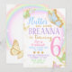 Elegante Purpurina de oro mariposa invitaciones a la fiesta de cumpleaños. En los impresionantes colores del arcoiris pastel con acentos purpurinas de oro, seguro que esto hará que sus niñas se muevan el corazón.