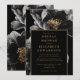 Esta elegante invitación de despedida de soltera floral negra y dorada puede ser personalizada con su información en tipografía moderna. Diseñado por Thisisnotme©