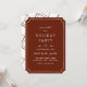 Prepárate para celebrar con estilo con esta invitación fiesta Navidades de moda! Cuenta con un fondo rojo oscuro, un marco en forma de boleto blanco con la mano y una mezcla de tipografía clásica y escritura elegante. "Fiesta de feriados" está impresa en negritas capitales de los serbios, pero puedes fácilmente personalizar para cualquier evento — como "Cena de Navidades" o "Papá Noel secreto". Los detalles del evento se muestran en una fuente limpia y clásica, con el nombre del host en un guión hermoso. La parte trasera está borgoñona, con unas líneas blancas de cuadros, que le confieren un ambiente acogedor y atemporal. También disponible como descarga digital. Explore los elementos coincidentes de la colección o busque en nuestra tienda diseños de tarjetas de Navidades más únicos.