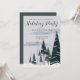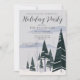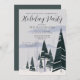 Una hermosa escena invernal de bosques llenos de nieve de abeto verde oscuro y abetos y un cielo gris pálido decoran esta invitación de fiesta de vacaciones para una reunión familiar o un evento de negocios. Este moderno dibujo de un paisaje natural nevado con árboles en forma de triángulo es perfecto para un evento corporativo de diciembre o enero o para una gala de Navidades de empresa.