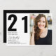 Celebra tu cumpleaños 21 con estilo con esta elegante invitación a la fiesta de fotos en blanco y negro. Diseñada con un atractivo moderno y atemporal, esta invitación marca el tono para una memorable celebración histórica. Ya sea que esté organizando una reunión informal, una cena formal o un animado fiesta, este modelo de personalizable es la manera perfecta de compartir los detalles de su evento con la familia y amigos. Este diseño presenta una paleta de color blanco y negro limpia y moda, lo que lo hace versátil y adecuado para cualquier tema fiesta. Puede personalizar la invitación fácilmente cargando su foto favorita, agregando su nombre e incluyendo todos los detalles importantes del evento, como fecha, hora, ubicación e instrucciones RSVP. El diseño, sencillo pero elegante, garantiza que el mensaje se destaque, mientras que la impresión y el papel de primera calidad proporcionan un acabado profesional que los clientes apreciarán. Desde fuentes elegantes hasta la colocación de texto en personalizable, esta invitación ofrece mucho espacio para la creatividad a la altura de su personalidad y la vibración de su celebración. Ya sea que esté celebrando en un lugar de moda, lanzando un bash en el patio trasero o organizando una cena acogedora, esta invitación es una manera muy apropiada de invitar a sus seres queridos. El diseño minimalista permite que el foco permanezca en sus detalles personales y en la foto elegida, asegurando una invitación única y sentida. Comience su celebración de 21 años en la nota correcta enviando estas elegantes y sofisticadas invitaciones de fotos en blanco y negro. Impresiona a tus huéspedes con un diseño que combina simplicidad, elegancia y modernidad, haciendo que tu evento sea inolvidable desde la primera impresión.