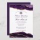 Elegante agate morado y dorado decora el lado de esta moda ceremonia de Bat Mitzvah e invitación a la fiesta. El nombre de su hija está escrito en un hermoso guión cursivo bajo la Estrella de David. Un diseño moderno y de moda para un chica judío de moda llamado a la Torah.