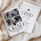 Celebre a su graduado con un estilo atemporal y sofisticado con esta elegante invitación de fiesta de graduación en negro y blanco. Contra un fondo blanco elegante, la tipografía moderna "GRAD" en serif crea un punto focal refinado, completo con un icono de gorra de graduación estilizado posicionado sobre la "R". La cola fluida de la "R" se transforma en una borla elegante, uniendo sin problemas el nombre del graduado, escuela, universidad o institución y año de graduación para un aspecto coherente y lujoso.