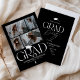 Celebre a su graduado con un estilo atemporal y sofisticado con esta elegante invitación de fiesta de graduación en negro y blanco. Contra un fondo negro elegante, la tipografía moderna "GRAD" en blanco serif crea un punto focal refinado, completo con un icono de gorra de graduación estilizado posicionado sobre la "R". La cola fluida de la "R" se transforma en una borla elegante, uniendo sin problemas el nombre del graduado, escuela, colegio o universidad y año de graduación para un aspecto coherente y lujoso.