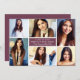 Anuncie su graduación con estilo mostrando sus fotos favoritas de los adultos mayores en el diseño de esta tarjeta de collage de fotos. Personalice la redacción de la parte trasera de la tarjeta para invitar a familiares y amigos a una fiesta de graduación para celebrar la ocasión. El color de fondo rojo burdeos/vino silencioso se puede personalizar para que coincida con los colores de la escuela o de la foto.
