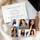 Anuncie su graduación con estilo mostrando sus fotos favoritas de los adultos mayores en el diseño de esta tarjeta de collage de fotos. Personalice la redacción de la parte trasera de la tarjeta para invitar a familiares y amigos a una fiesta de graduación para celebrar la ocasión. El fondo del carbón vegetal y los colores del texto se pueden personalizar para que coincidan con el color de la escuela o de la foto.